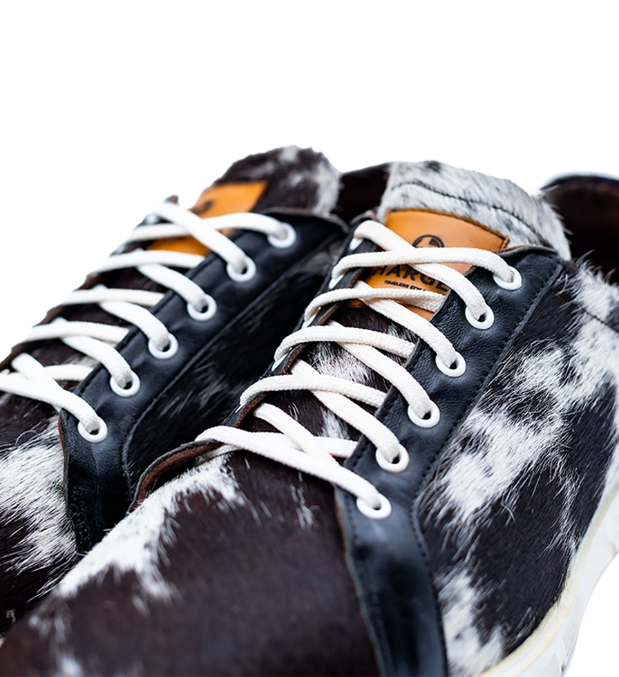The distinctive pattern of Unguni skin, with its rich texture and natural elegance, becomes the focal point of these sneakers. The interplay of deep black and crisp white hues creates a visual masterpiece, making each pair a testament to the artistry of bespoke craftsmanship.
